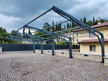 Realizziamo e installiamo coperture auto modulari zincate a caldo con predisposizione per successiva installazione di pannelli fotovoltaici.