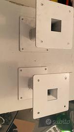 Copia staffe metalliche robuste, usate per sostenere ripiani, tavoli pieghevoli o piani di lavoro fissandoli al muro o a una struttura.