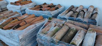 Vendo vecchi coppi antichi, sono circa 3400 pezzi (6500kg - 14 bancali). I coppi sono di colore misto, c'è una foto di un tetto fatto da noi per capire il risultato finale. Ideali per ricoprire pannelli sandwich finto coppo, oppure per la coperta superiore di un nuovo tetto. Coprono una superficie di circa 220mq considerando solo la coperta superiore. Possiamo caricare con il muletto, trasporto non disponibile. Prezzo €1,00 a coppo, ma leggermente trattabile.