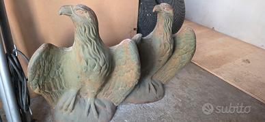 vendo coppia di acquile molto pesanti, probabile cemento grezzo o ghisa, teoricamente provenienti da palazzo del fascio, altezza circa 60cm, adatte a un cancello o entrata di casa ecc, vendo a prezzo di realizzo euro 500 la coppia, non vendibili singolarmente, non spedisco e no perditempo, primo contatto wathapp