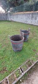 coppia di botti in legno per abbellimento o come vasi per fiori e piante. Altezza 57 diametro 50 3398563580