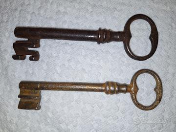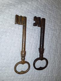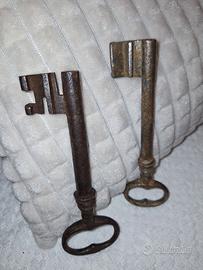 coppia chiavi femmina antiche epoca settecento/ottocento lunghezza una 13,5 centimetri, l'altra 13