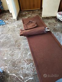 Coppia di brandine da campeggio, smontabili con sacca per il trasporto. Misure 180 x 50 cm circa. Tessuto di cotone marrone