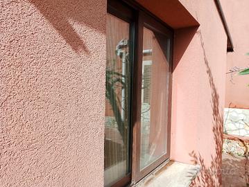 coppia finestre in alluminio colore noce scuro con falsi telaio e vetri camera insonorizzati