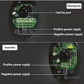 Coppia di fotocellula autocentrante, composta da trasmettitore e ricevitore. Portata direttiva 15 metri.