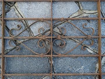 Coppia di grate per finestra in ferro Battuto. Nessun punto di saldatura. Le parti sono fissate con fascette o tramite ribattitura del metallo.