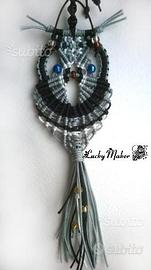Splendida coppia di gufi zebra a macramè creato con filo di nylon trecciato colore da appendere, realizzato completamente a mano