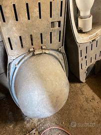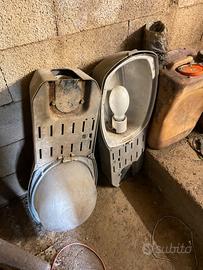 Coppia di belle lampade stradali vintage, possibilità montaggio palo o adattamento a piastra e quindi muro, una di queste come da foto senza vetro originale; l’altra perfettamente conservata con il suo vetro originale. Molto belle e be adattabili a giardini e proprietà private. Sono da esterni per cui altissima resistenza all’ingresso di acqua e polveri.