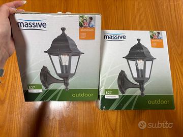 coppia di lanterne applique da parete per esterno marca massime in alluminio di colore nero e vetro. Nuove mai utilizzate 30 singola 55 la coppia