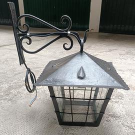 Coppia di lanterne d'epoca da esterno in ferro, con supporto per parete. Impianto elettrico nuovo. Dimensioni 30 x 30 cm. Il prezzo si intende per la coppia. Ritiro in zona corso San Gottardo/Navigli - no Area C