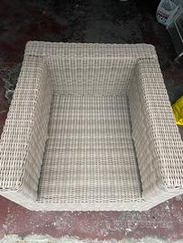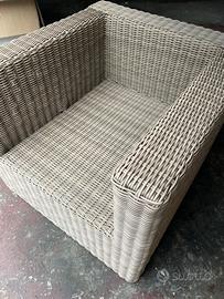 Vendo 2 splendide poltrone da esterno in rattan sintetico color tortora, solide e molto confortevoli, perfette per terrazzo, giardino o veranda coperta. Misure 90x80 h 70