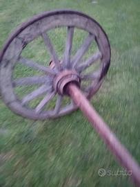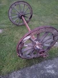 Vendo coppia di ruote (D. 800 circa) con assale originale di vecchio carro contadino, epoca 1900 da restaurare alcune parti in legno. Idoneo per giardini, porticati o esposizioni