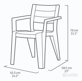 Caratteristiche: • Finitura effetto legno • Impilabile • Resistente agli agenti atmosferici • Facile da pulire • Zero manutenzione • Colore grafite • Dimensioni h79x61,5x58,5 cm