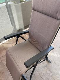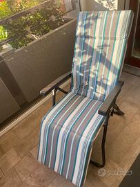 Vendo due comode sedie reclinabili ideali per balcone, terrazzo o giardino. Struttura robusta in metallo verniciato, con braccioli ergonomici e meccanismo regolabile per scegliere l’inclinazione preferita, fino alla posizione distesa.