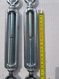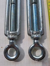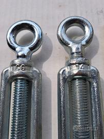 Vendo coppia di tenditori per cavo metallico a due occhielli in acciaio zincato M12 e diametro 18 mm.