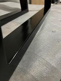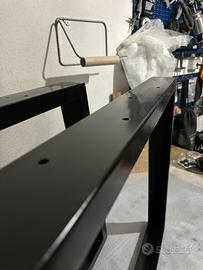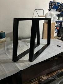 Vendo coppia di gambe tavolo a forma trapezoidale. Adette per tavoli da cucina o soggiorno, realizzate con tubolare rettangolare in ferro verniciato nero opaco. Dotate di piedini inferiori regolabili gommati. Misure: - Altezza 73cm - Larghezza parte bassa 85cm - Larghezza parte alta 70cm. Possibilità di realizzare su richiesta modelli con forma, dimensioni e colore verniciatura differenti. Visita il mio profilo instagram ironlan__ per scoprire tutte le mie creazioni.