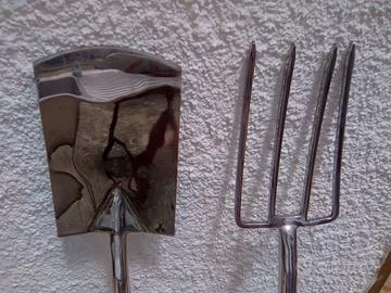 Vendo coppia pala e forcone in acciaio inox, nuovi. Altezza 102 cm