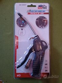 Coppia pistole ad aria per compressore. Una dotata di manometro per gonfiare le gomme e l'altra è una soffiatrice. Nuove e sigillate. Attacco europeo.