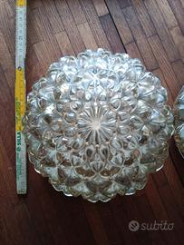 vendo coppia plafoniere vetro lavorato... simile a Murano come da foto... misura diametro totale ciascuna cm 21...a euro 10,00 (di tutte due).... spese spedizione escluse