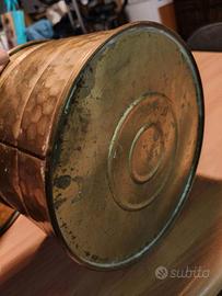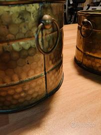 Set di due portavasi in ottone, uno grande e uno piccolo, con finitura martellata.