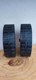 Ideali come pezzi di ricambio per diverse attrezzature. Le ruote presentano un battistrada con scanalature (tacchettato) che garantisce un buon grip su diverse superfici, come prato o terra.