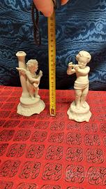 Coppia Sculture Amorini Putti Musici Porcellana Bi