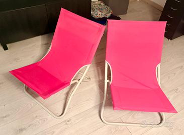 Coppia Sdraio/Sedie per la spiaggia/solarium/giardino/terrazza, colore rosa, pieghevoli. Usate molto poco. Prezzo indicato per entrambe.