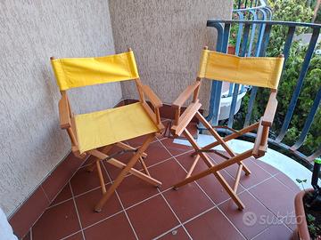Vendo 2 sedie regista come foto in perfette condizioni,in una si deve comprare il ricambio del tessuto.vendo la coppia 30 euro NO PERDITEMPO