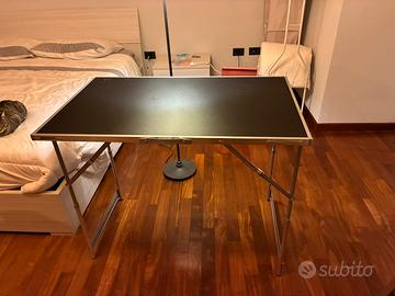 Vendo coppia di tavoli multifunzione pieghevoli con struttura in alluminio. Sono la soluzione definitiva per chi ha bisogno di un piano d'appoggio solido ma non ha spazio per riporlo. Il punto di forza di questi tavoli è l’ingombro minimo: una volta chiusi occupano solo 2 cm di spessore, permettendo di infilarli dietro un armadio, sotto il letto o nel bagagliaio dell'auto senza accorgersene. Caratteristiche Principali: • Design Ultra-Slim: Spessore da chiuso di soli 2 cm. • Leggerezza: Telaio in alluminio di alta qualità, facilissimi da trasportare grazie alla maniglia laterale. • Dimensioni generose: Perfetti per creare una postazione di lavoro lunga e continua se affiancati. • Multiuso: Ideali per pittura (belle arti), banchetti da mercatino, hobby, campeggio o come tavoli d'emergenza per ospiti. Condizioni: Ottime, piani in MDF nero integri e meccanismi di chiusura fluidi. Prezzo: • 25 € per il singolo tavolo • 45 € per la coppia (affare per chi cerca una postazione completa)