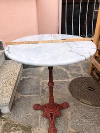 coppia tavolini per esterno piano in marmo venato diametro 60 cm piedistallo in ghisa verniciato altezza 72 cm ca. possibilità vendita singola no spedizione per peso e ingombro