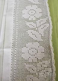 Coppia di fantastiche tende bianche interamente realizzate a mano, con al centro ricamo floreale a punto croce e bordo laterale in pizzo filet, misure LxH 75x144 cm se interessati chiamare Lucio 3408823628