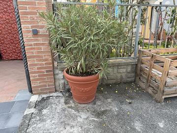Coppia Vasi con oleandro (color rosa/pesca)- Materiale plastica, misure in foto solo ritiro. Foto con fioritura scattate il 2 giugno 2025