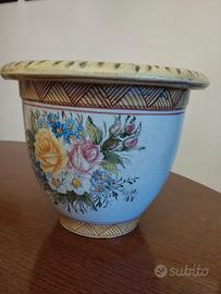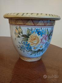 coprivaso in ceramica decorata, altezza 22 cm, diametro superiore 20 cm