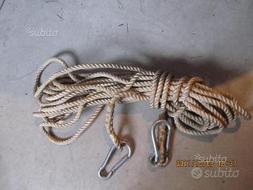 Corda nylon usate da 5 / 10 /15 euro con moschettoni da 11, 13, 21, 25. 26. metri. in ottime condizioni, eventuale spedizione a carico richiedente.