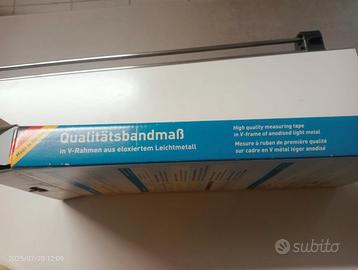 Cordella metrica, lunghezza 25 m, nastro in acciaio 16 mm, tamburo acciaio, impugnatura ergonomica, parti in plastica antiurto. Nuova mai usata