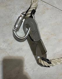 Vendo cordino di sicurezza per posizionamento, ideale per lavori su impalcature, tralicci o piattaforme elevatrici. • Composizione: Corda in fibra sintetica ad alta resistenza con guaina protettiva anti-sfregamento nera. • Connettori inclusi: 1. Moschettone in acciaio con chiusura a ghiera manuale. 2. Gancio a grande apertura in acciaio con chiusura di sicurezza automatica a doppia leva. • Stato: Ottime condizioni estetiche, moschettoni perfettamente funzionanti senza segni di ruggine o blocchi.