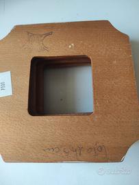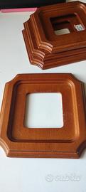 vendo 4 cornici sagomate in legno marchio CABE PARMA. larg lato cm 14,5 credo vecchie placche copri spina o interruttore prezzo per tutte 4 € 12 usate ,non vedo rotture ,