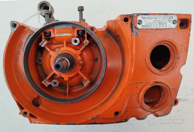 Corpo carter motosega husqvarna 65L completo di albero motore, biella e cuscinetti pignone, derivante da motosega con pistone rigato in ottime condizioni come da foto.