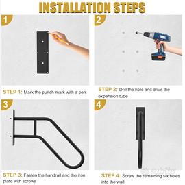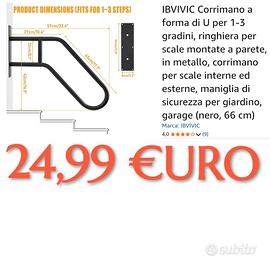sezione tubolare con diametro di 3,3 cm strutturata con una parte lineare di 35 cm poi abbiamo la continuazione del corrimano con una pendenza di 45° di 45 cm.