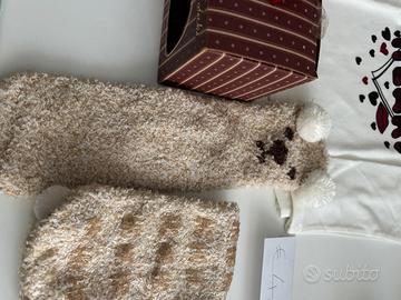Tisaniera Nuova/maglia bambina taglia 4 anni cotone invernale/ sacco juta per contenere doni / un paio di calzini con scatola originale (oh oh oh scritto sotto ...sono natalizi ) / decorazione fatta a mano nuova/2 angeli in ferro da appendere