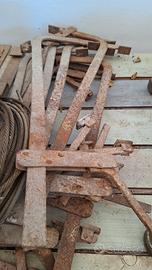 Cravatte metalliche: 40 pezzi da 65cm 35 pezzi da 85cm 6 pezzi da 110cm Fune acciaio di circa 35ml 16 Morsetti a leva L=80cm Barre zincate: circa 100 pezzi con H. 160cm circa 50 pezzi con H. 60cm