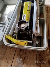 Cric idraulico a carrello, portata 20 quintali. Ditta Maurer. Nuovo, all'interno della sua valigetta.