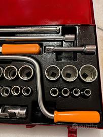 cricchetto 1/2" beta italy bussole poligonali metriche 21 PZ misure : 10-11-12-13-14-15-16-17-18-19-20-21-22-23-24-25-26-27-28-30-32 utensili in ottime condizioni utilizzati pochissimo qualche bussola ancora nuova valigetta riverniciata unica cosa da segnalare è l'asta con quadro maschio scorrevole è stata modificata/riparata comunque perfettamente utilizzabile il tutto come da foto!!