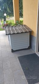 Cuccia per cani grandi della Ferplast modello Dog Villa 110, con pannelli coibentati interno, tendina in plastica ingresso, protezione antimorso porta, volendo apertura laterale per estate, cuscino interno idrorepellente. Dimensioni esterne cm 111 x 84 x 79.