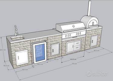 Ordina la tua cucina per la prossima estate, aggiungiti al gruppo di acquisto per avere un prezzo più basso. Ordinazioni aperte fino al 31/03/2026 Chiedi un preventivo e prenotati con un piccolo anticipo. Cucine da esterno rivestite in pietra naturale e acciaio inox personalizzabili, su misura con pietra a scelta. Varie tipologie di elettrodomestici: - lavello - frigorifero - friggitrice - barbecue - forno - telo su misura per copertura Garanzia sulla struttura 5 anni Garanzia elettrodomestico 2 anni Consegna inclusa, montaggio e scarico da camion esclusi. Indica le misure e gli elettrodomestici, scegli il tipo di pietra e chiedici un preventivo o informazioni. P.Iva 02501860569 Tel/Whatsapp 3780019467