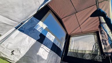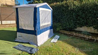 Cucinotto tenda Brunner Gusto II 200x150 Altezza 195-215cm Peso 12 kg Ottime condizioni come da foto. Acquistato nel 2025. Zanzarierina frontale con 2 piccole scuciture come da foto. Vendo con sacchi originali ma senza picchetti.