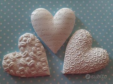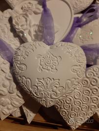 Realizzo anche su ordinazione cuori profumati in polvere di ceramica. Disponibile per realizzare bomboniere create a mano, per matrimonio, anniversario, battesimo, comunione, cresima, laurea, compleanni, pansionamento..e per altre pccasioni.