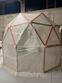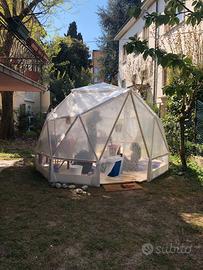 Vendo cupola geodetica usata in buone condizioni, facile da montare e adatta a diversi utilizzi. A differenza del kit originale, questa include: – struttura in legno già tagliata su misura – connettori già fissati ai pezzi – copertura in plastica resistente già tagliata ➡️ Pronta per il montaggio, senza necessità di ulteriori lavorazioni. Dimensioni: – Altezza: 2,75 m – Diametro: 3,50 m Ideale come tenda, spazio relax, struttura da giardino, area gioco per bambini, ricovero, ecc. Prezzo: €200 Condizioni: buone Contattami per maggiori informazioni o foto.