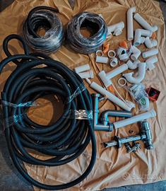 Curve tecniche da idraulico nuove e usate e guaine elettriche (metri 18 da cm 2 e due nuove da cm 1 lunghezza 15 metri circa complessive )