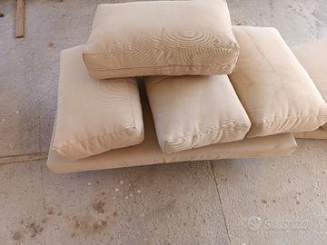 vendo cuscini per salotto da giardino. tessuto adatto per l'esterno e sfoderabile. seduta grande misura 119cm x 72 circa le due piccole 70 x 60 circa con 4 schienali di circa 60 x40